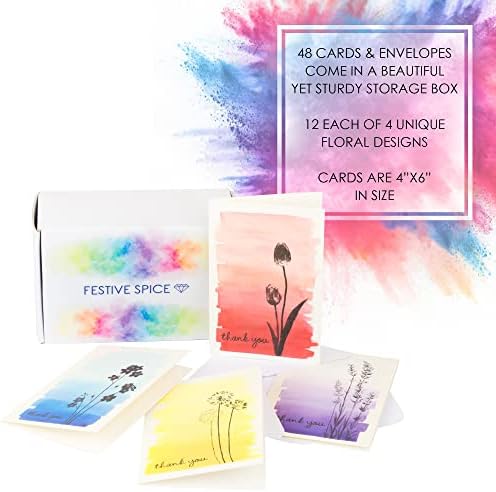Watercolor Thank You Playing cards – 48 Flower Playing cards with Envelopes – Dandelion, Rose, Lavender, Neglect Me Nots – Commencement Marriage ceremony Child Bathe Thank You Playing cards