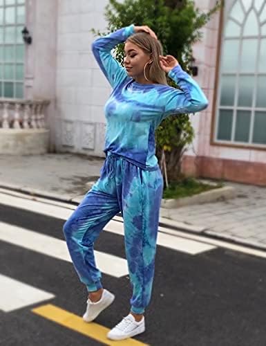 WFTBDREAM Womens Two Piece Outfits Tie Dye Lengthy Sleeve Pullover Pajamas Units