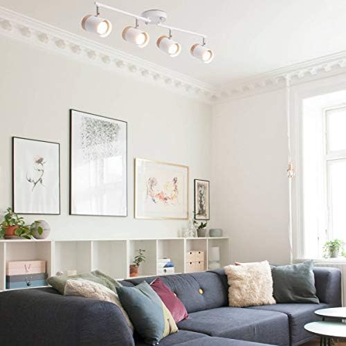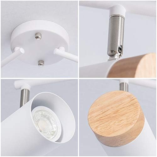 White 4-Mild Observe Lighting Package, Versatile Rotatable Mild Heads, GU10 Bulb with Metallic and Wooden Shade for Kitchen, Dwelling Room, Bed room, Bulb Not Included
