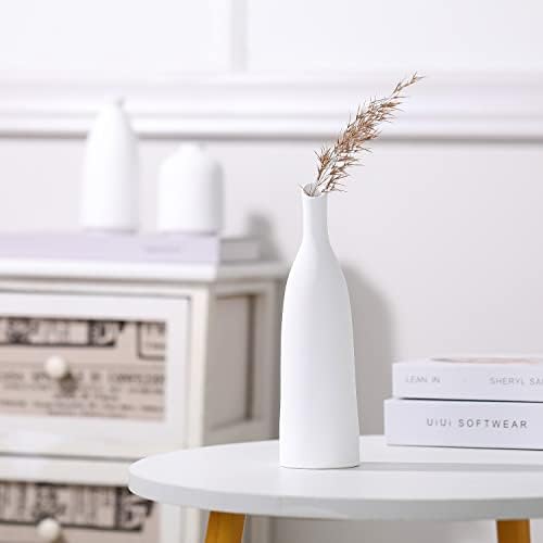 White Ceramic Vase for Decor, Small Flower Vases Set – 3 for Trendy Rustic Farmhouse, Ornamental Vase for Pampas Grass & Dried Flowers, Thought Bookshelf Décor, Eating Desk Decor