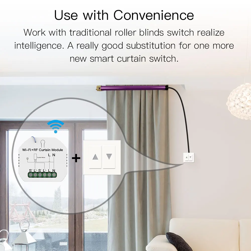 1. Use with Much More Convenience:A really good substitution for one more new smart roller blinds switch to work with your traditional curtain switch to realize intelligence.Also,it can be connected with your roller blinds shutter motor to smartly control your curtains.