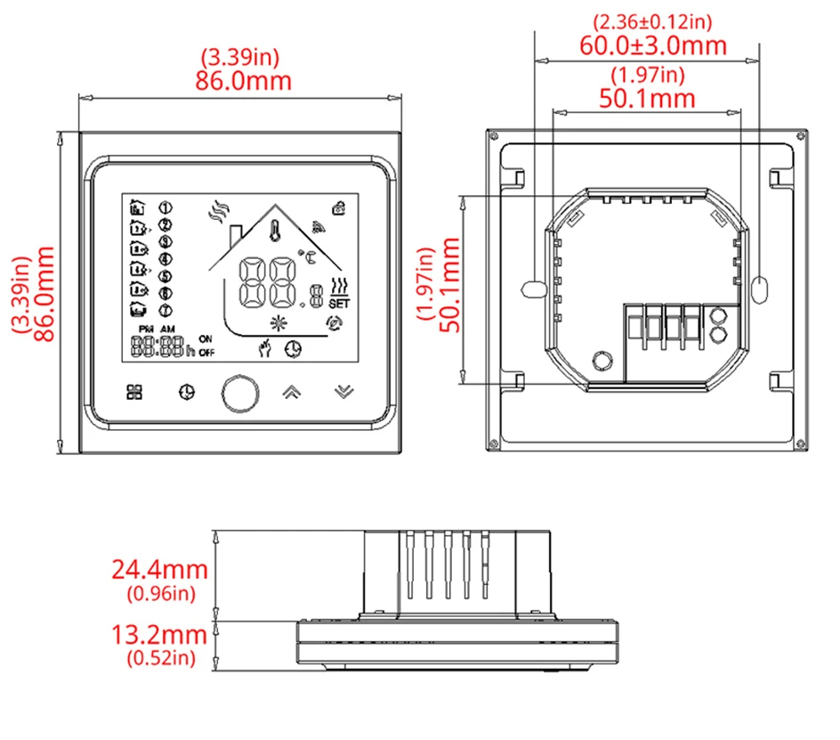| Your thermostat is appropriate foe set up inside a typical 86mm pattress field or European 60mm pattress field |