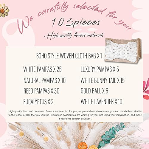 🌟103PIECES,HAND-PICKED BOUQUET-Thanks for selecting us, We commit ourselves to bringing the best high quality pampas grass、eucalyptus、gold ball、reed grass to your pretty dwelling and produce you a contact of the character souls on this particular intervals of time.