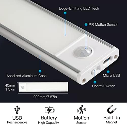 Wilgro Beneath Cupboard Lights Wi-fi – Beneath Counter Lighting Kits Rechargeable Movement Sensor Gentle Indoor LED Kitchen Lights 2 Pack (8 inch)