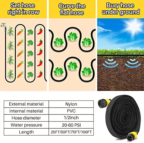 【Save Water& Save Time】Via the backyard soaker hose, water can repeatedly attain the roots of crops and soil, avoiding water evaporation, and may save as much as 70% of the water. Additionally largely unencumber your time. Above the bottom or beneath the leaves, so long as the water strain is decrease than 60 PSI, it may be used usually.