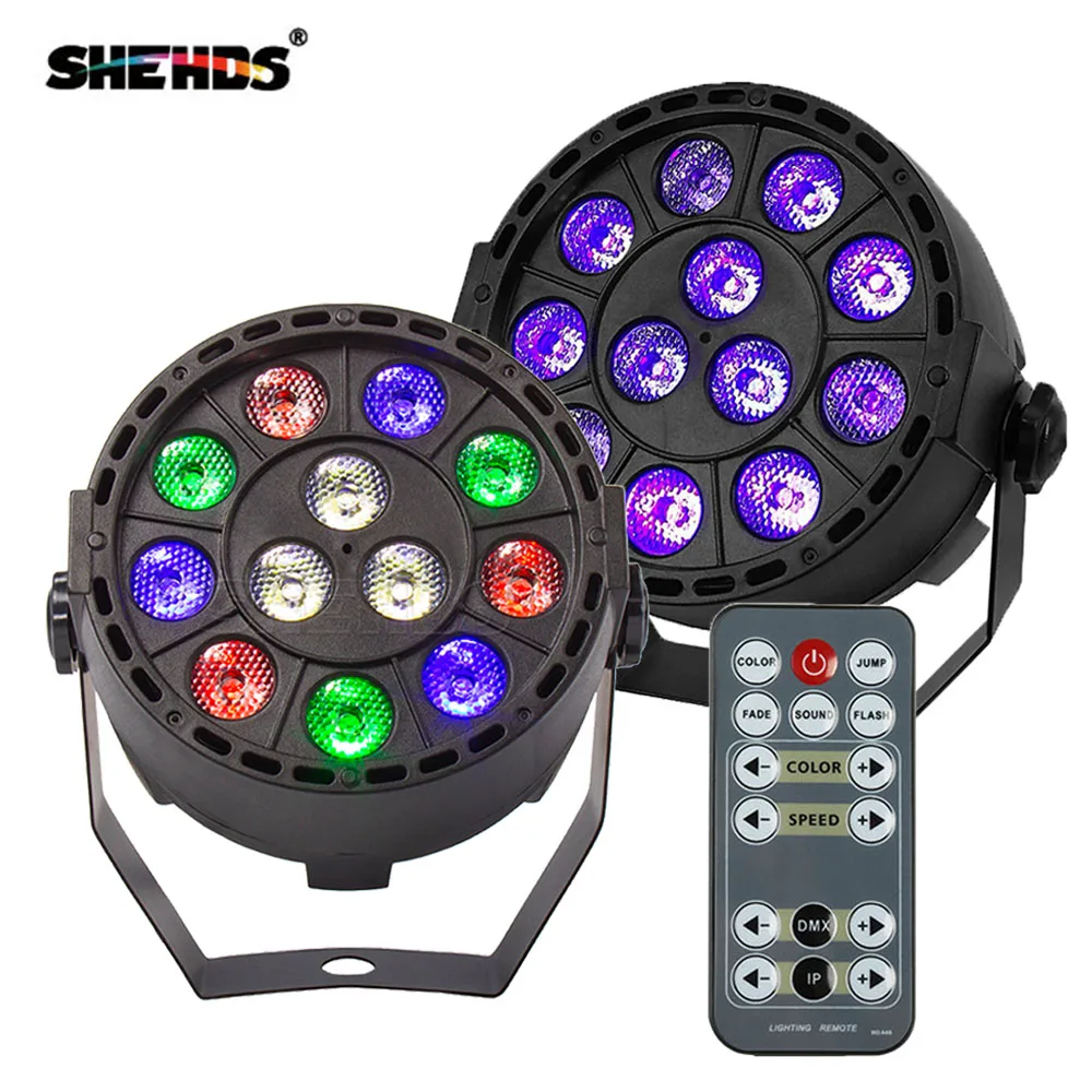 Wireless Remote Control RGBW 12x3W UV Disco Wash Flat Light Equipment 8 Channels DMX 512 LED Uplight Stage Lighting Effect Light
