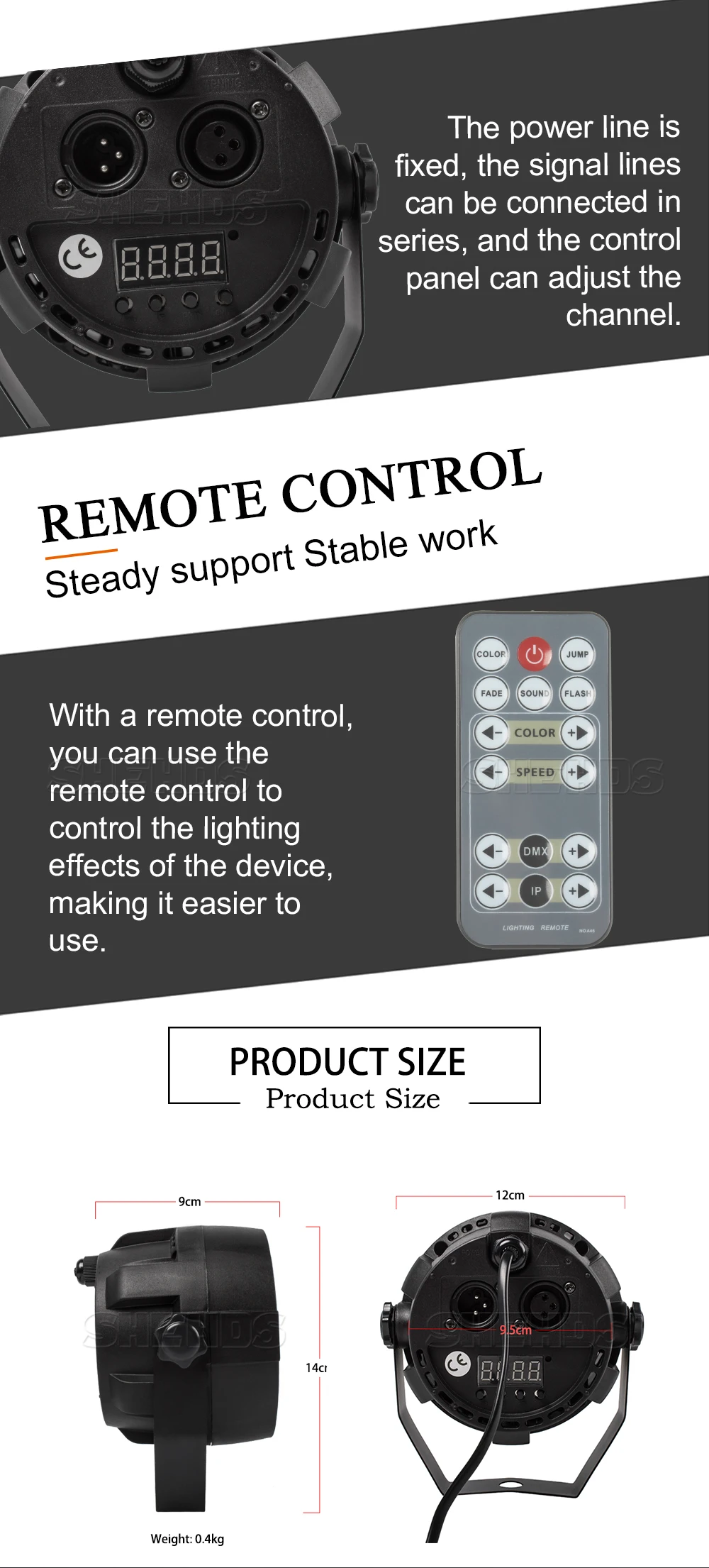 * DMX-Control-Channels: 8 DMX Channels ,international standard DMX512,3-Pin