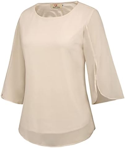 Options: Informal, Chiffon Shirt Tops, Crew Neck, Strong Shade, Dressy Chiffon Shirt, Half Ruffle Cut up Sleeve, Two Layers Design, 3/4 Sleeve tops, Chiffon shirts free match.