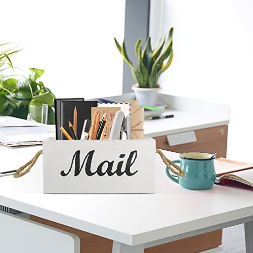 Wooden Mail Organizer Field Countertop – Mail Holder Field with Rope Deal with, Rustic Letter Holder Field for Desktop, Mail Storage Field for Letter, Invoice and Coupon, Desk Mail Sorter for Workplace & Dwelling