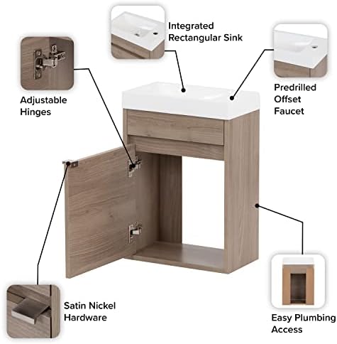 Spring Mill Cupboards 15.75″ W x 8.66″ D floating Kambree self-importance is designed with small areas in thoughts. Its flat-panel inset door and low-profile ledge pull create a smooth trendy look. Its single-shelf open cupboard inside offers flexibility in storage choices and easy accessibility to plumbing. Its mild forest elm woodgrain end is complemented by a satin nickel ledge pull and a vivid white cultured marble self-importance prime with an built-in rectangular sink for a seamless and classy look. The sink prime is predrilled for a single-hole faucet that may be positioned on the left or proper aspect. This predrilled self-importance prime permits you the choice to decide on the tap that most closely fits your model. Designed to be simply mounted in your wall round your current plumbing, this floating cupboard contains a detachable sink prime and an open-back design.