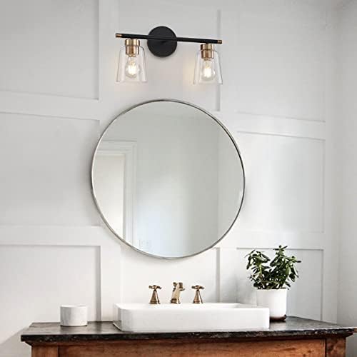 WUZUPS 2-Gentle Rest room Gentle Fixture Clear Glass Shade Morden Vainness Wall Scones Gentle Clear Glass Shade for Bed room Residing Room, E26 Base, Black Gold