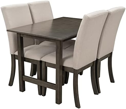 XD Designs Farmhouse 5-Piece Stable Wooden Eating Desk Set, 45.5‘’ Rustic Fashion Eating Desk with 4 Upholstered Eating Chairs for 4, Eating Set