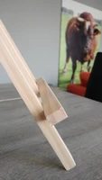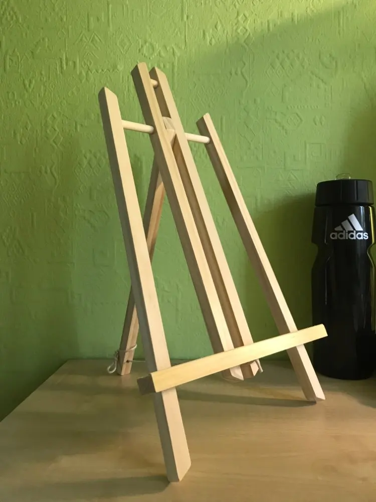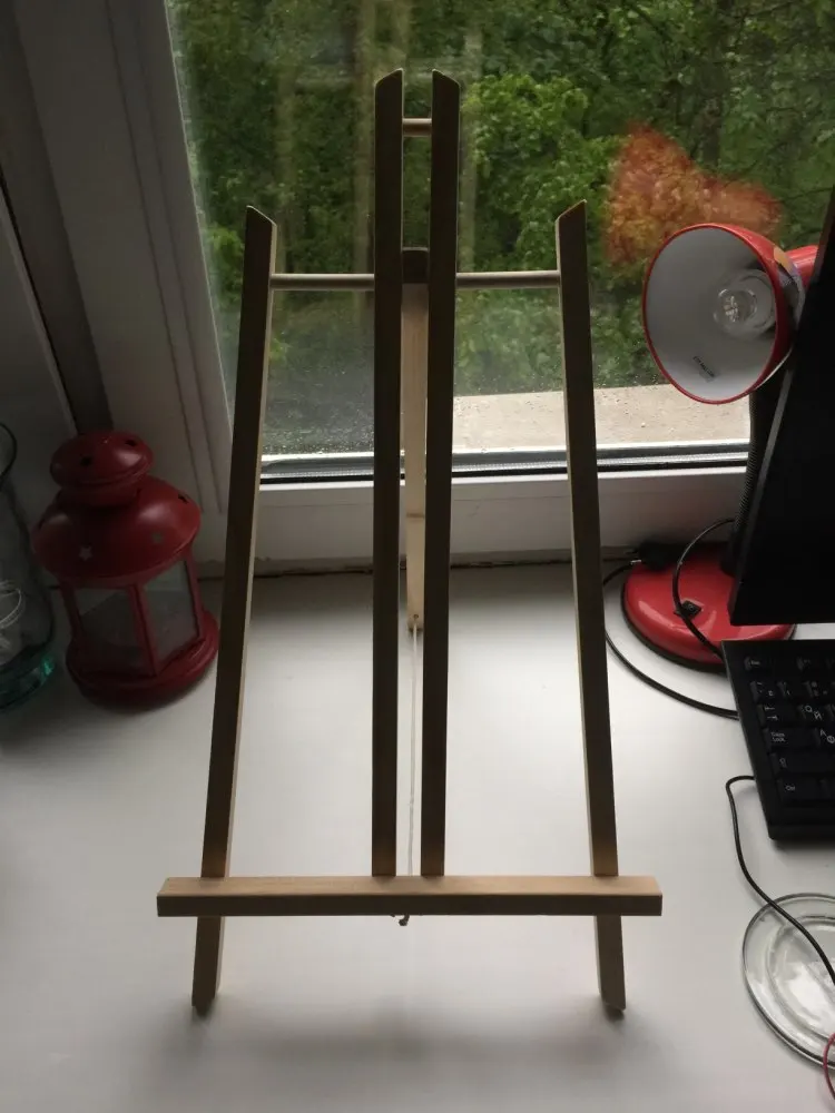 Everything is fine, the easel is comfortable. It is a pity only that there is no way to set at different angles, if only the rope to shorten. In the rest, I like everything.