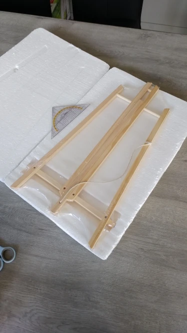 Good easel for the presentation of the picture. For the photo shoot. I would not risk drawing on it, there are much more sustainable and practical models. Packed perfectly, photos attached.