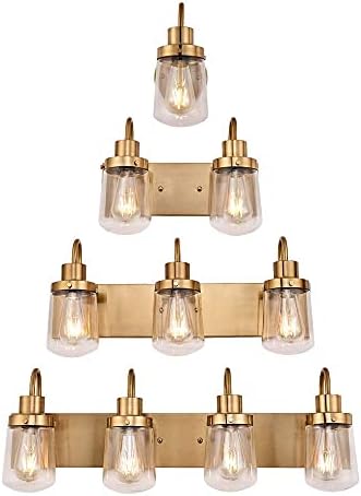 YAOHONG Trendy Lavatory Vainness Gentle 4-Lights Lamp in Brushed Brass,Farmhouse Wall Gentle Fixture with Clear Glass Shades,Indoor Wall Lamp