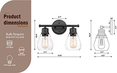 Be the first to review “YEEHOME Black Toilet Mild Fixtures, 2-Mild Vintage Vainness Mild, Industrial Wall Sconce Lighting fixtures, Porch Wall Lamp with Glass Shade, Trendy Bathtub Wall Mounted Lights for Mirror, Residing Room”