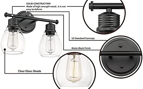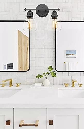 YEEHOME Black Toilet Mild Fixtures, 2-Mild Vintage Vainness Mild, Industrial Wall Sconce Lighting fixtures, Porch Wall Lamp with Glass Shade, Trendy Bathtub Wall Mounted Lights for Mirror, Residing Room