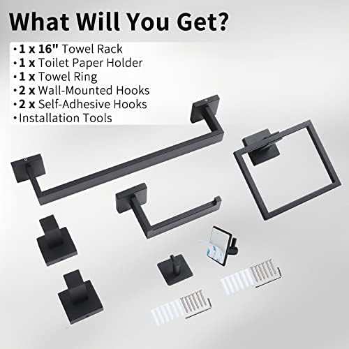 【Save Time with Full 7 Items Set】 This rest room {hardware} set can meet all of your wants directly together with 16” hand towel rack for lavatory, distinctive sq. towel holder ring, rest room paper holder which can be utilized horizontally and vertically, 2 wall-mounted gown & towel hooks, and one other 2 self adhesive hooks which could be not solely utilized in rest room, but in addition in bed room, and kitchen to hold keys, kitchen provides.