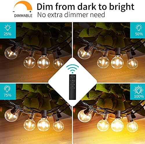 Yuusei 25Ft Dimmable String Lights Distant Management, LED Out of doors Patio Mild with 12+1 Shatterproof G40 Bulbs, IP45 Waterproof Linkable Hanging Lights, 4 Mild Modes, 2700K Heat White, E12 Socket Base