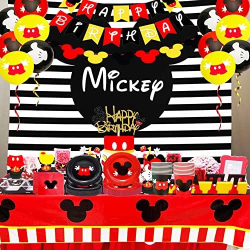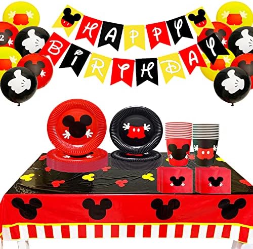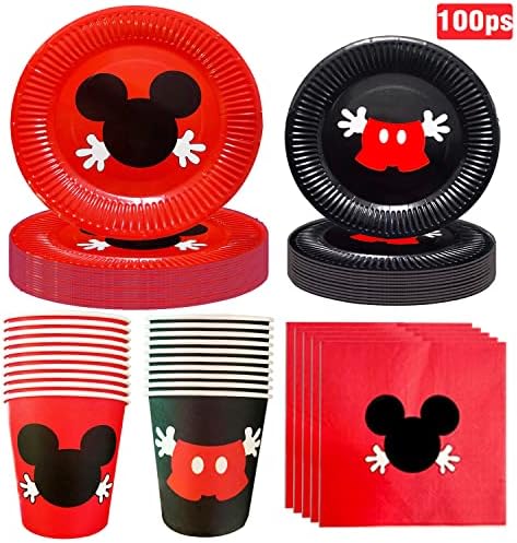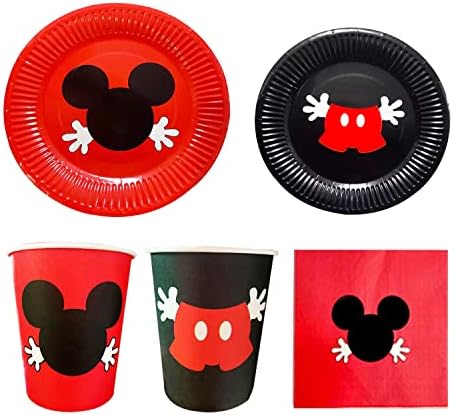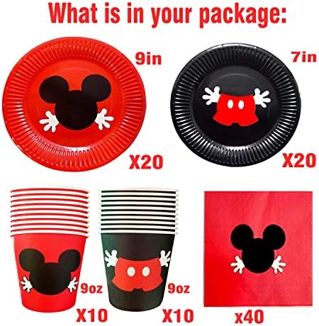 Yuying Mickey Birthday Celebration Provides ,40pcs Mouse Paper Plates,20pcs Cups,40pcs Napkins ,Mickey Plates Napkins and Cups for Mouse Birthday Decorations Serve 20 Company