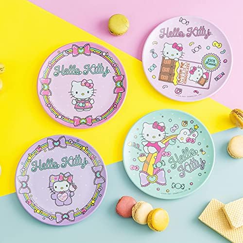 Zak Designs Sanrio Whats up Kitty Appetizer Plate Set Contains Sturdy Plastic Dishes with Selection Art work, Enjoyable Dinnerware is Good for Children and Serving Meals Indoors or Outside (6.3 inches, 4-Pack)