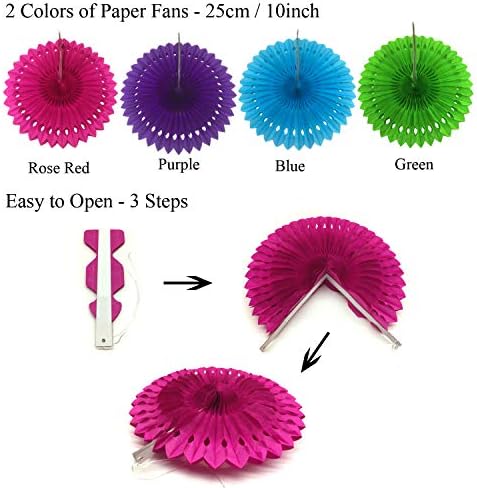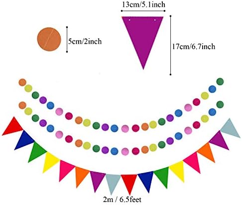 Consists of: 1 x 6.5ft Triangular pennants, 8 x 10inch/25cm Paper pompoms, 6 x 10inch/25cm Paper followers, 4 x Paper hole followers, 2 x 6.5ft Circle Paper Garland. ( Shade: Multi-color)