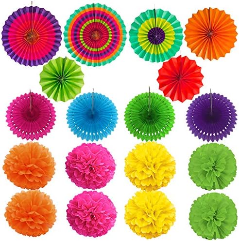 ZERODECO Celebration Ornament, 21 Pcs Multi-color Hanging Paper Followers, Pom Poms Flowers, Garlands String Polka Dot and Triangle Bunting Flags for Birthday Events, Marriage ceremony Décor, Fiesta or Mexican Celebration